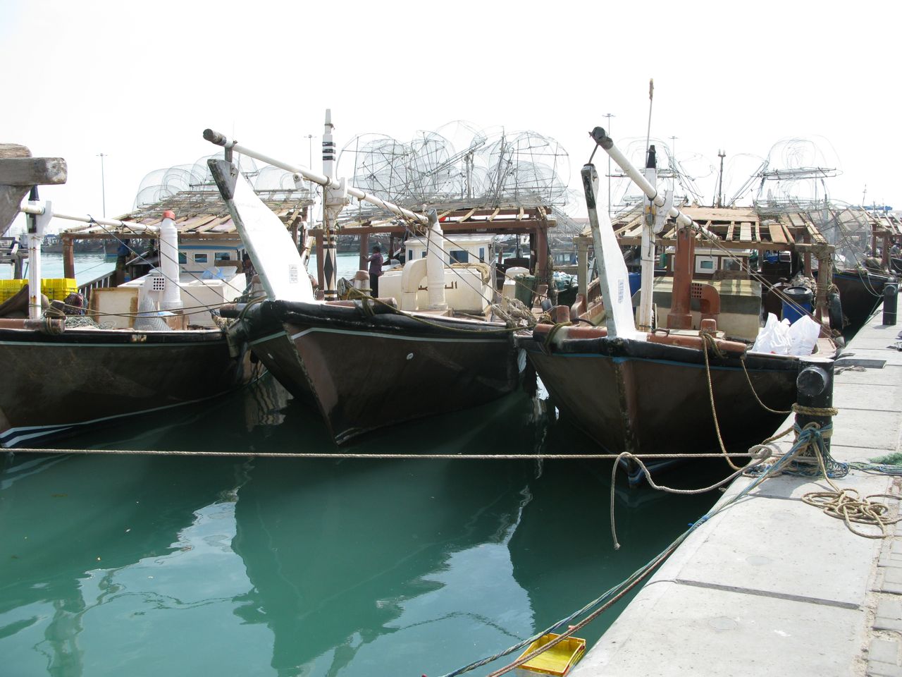 The tour guide, Surya, picked me up in the ubiquitous V8 Toyota LandCruiser 4 WD. They don’t worry about gas guzzlers in this country. Gas is produced right here and it is cheap. Our first destination was Al Khor, the 2nd largest city in Qatar. It is where a lot of gas company employees live. Surya is from Nepal and a great tour guide. He works for Regency Travel & Tours. He is full of relevant information and good ideas about what to visit. In Al Khor we first went down to the commercial fishing harbor.