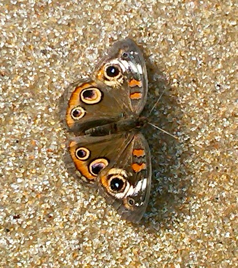 The beach is narrow and the sand is redish and sometimes dark brown or even black. I am told that some of the sand is magnetized and can be picked up with a magnet (courtesy of John Todaro)! This means it is magnetite (Fe3O4), also called ferrous ferric oxide. Magnetite crystals can be found in bacteria and in the brains of some animals. It is speculated that this may provide some animals with a sense of the earth’s magnetic field and the ability to navigate long distances to find their breeding grounds.