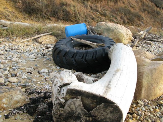 I mean plastic, fishing nets, ropes, buoys, even a 6 foot large tractor tire that must have washed ashore 14 years ago, as visitors have carved their initials in to the tire with dates and there is one carving dated 1997!