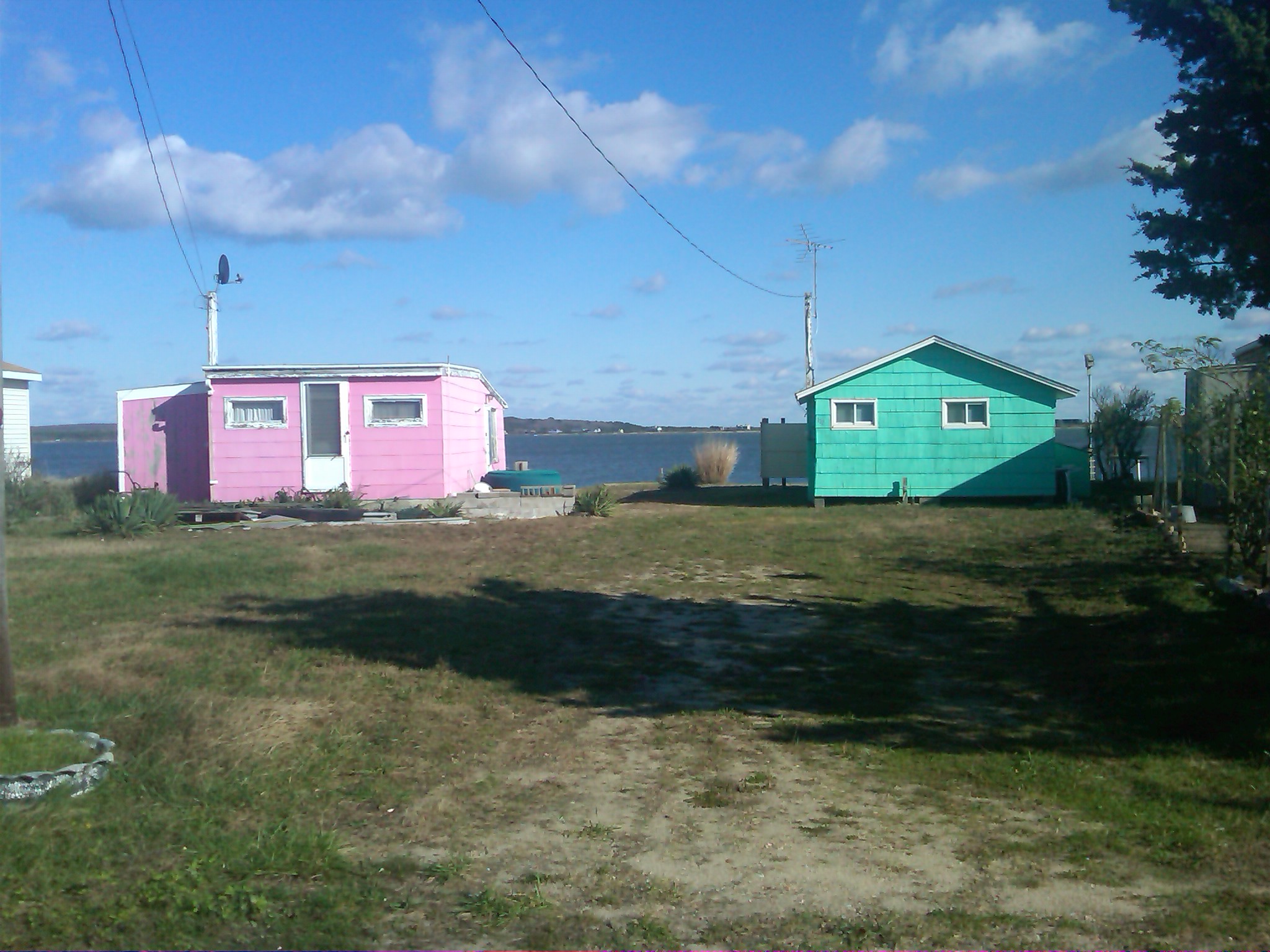 The beach along the west side of the Harbor is characterized by patches of dark brown or rusty sand, but mostly by marshes. It is really not a much of a bathing beach. It is often a difficult walk specially at high tide. But if you do walk along the eastern shore of Napeague Harbor you will come across a small cluster of beach cottages built right up to the water. Some of them are brightly painted.