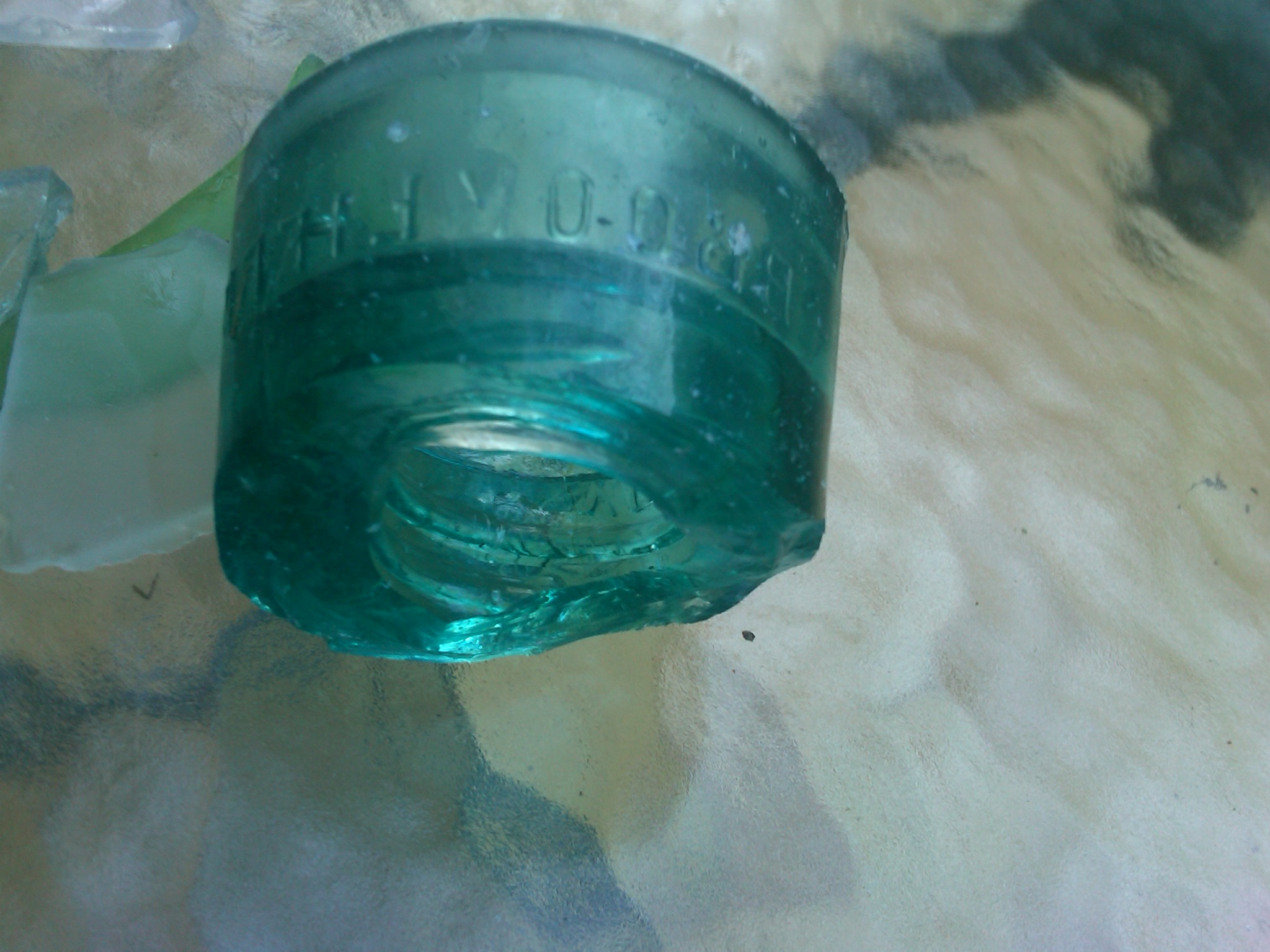 On a recent walk I found dozens of interesting sea glass pieces including a large round green piece with the markings “BROOKFIELD YORK” on it. After a little research on the web I found the company Brookfield Glass from Brooklyn and New Jersey. The piece I found was a teal glass insulator for telephone and telegraph lines and dates back to before 1921 when the company ceased to exist: