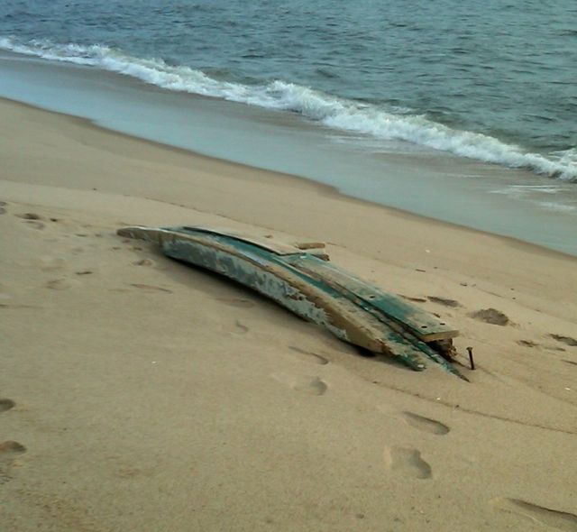 About 1/4 mile east of Napeague Lane, there is an interesting shipwreck along the beach (Jan 16, 2012), the stern of a fishing boat, half buried in the sand. Nobody knew about it when I asked around. I went back to the same beach the next day to investigate. The high tide had washed the sand away and the stern of the boat was more exposed.