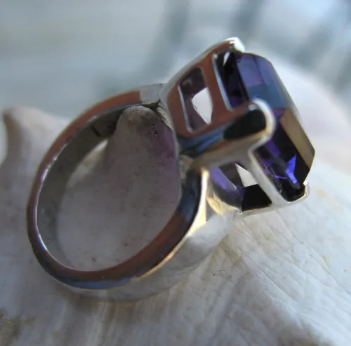 Labor of Love. 7 ct dark purple amethyst, emerald cut style. Just a beautiful stone. The basket setting was carved in green wax by hand.